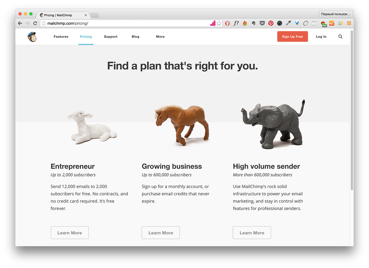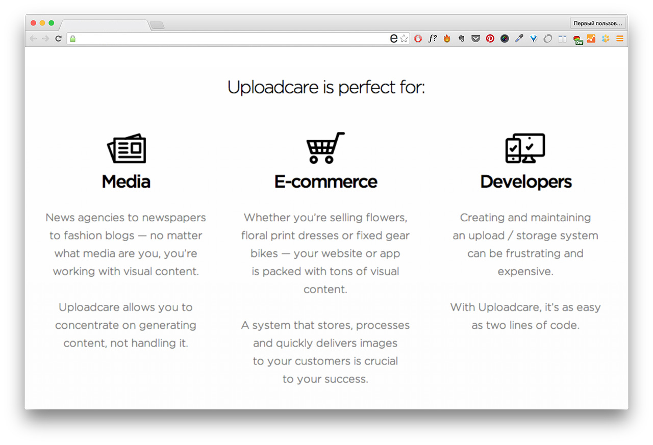 К примеру, лендинги для всем известного нам сервиса